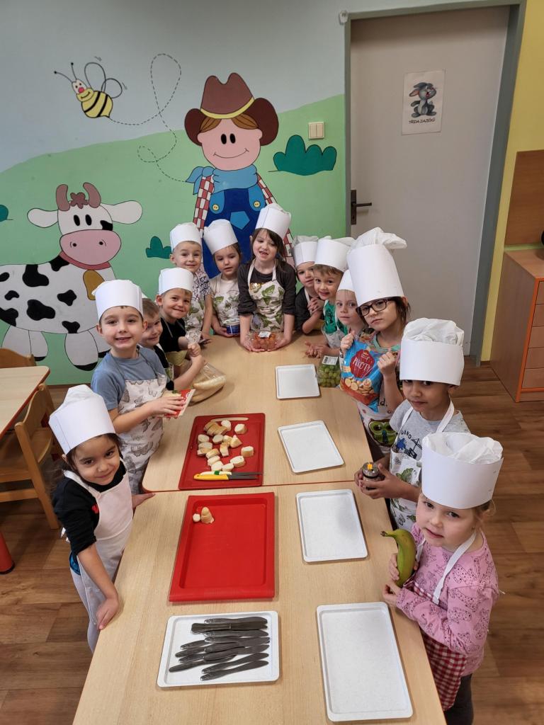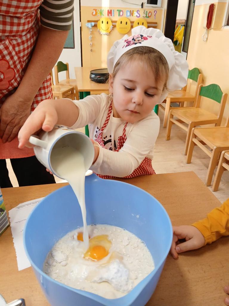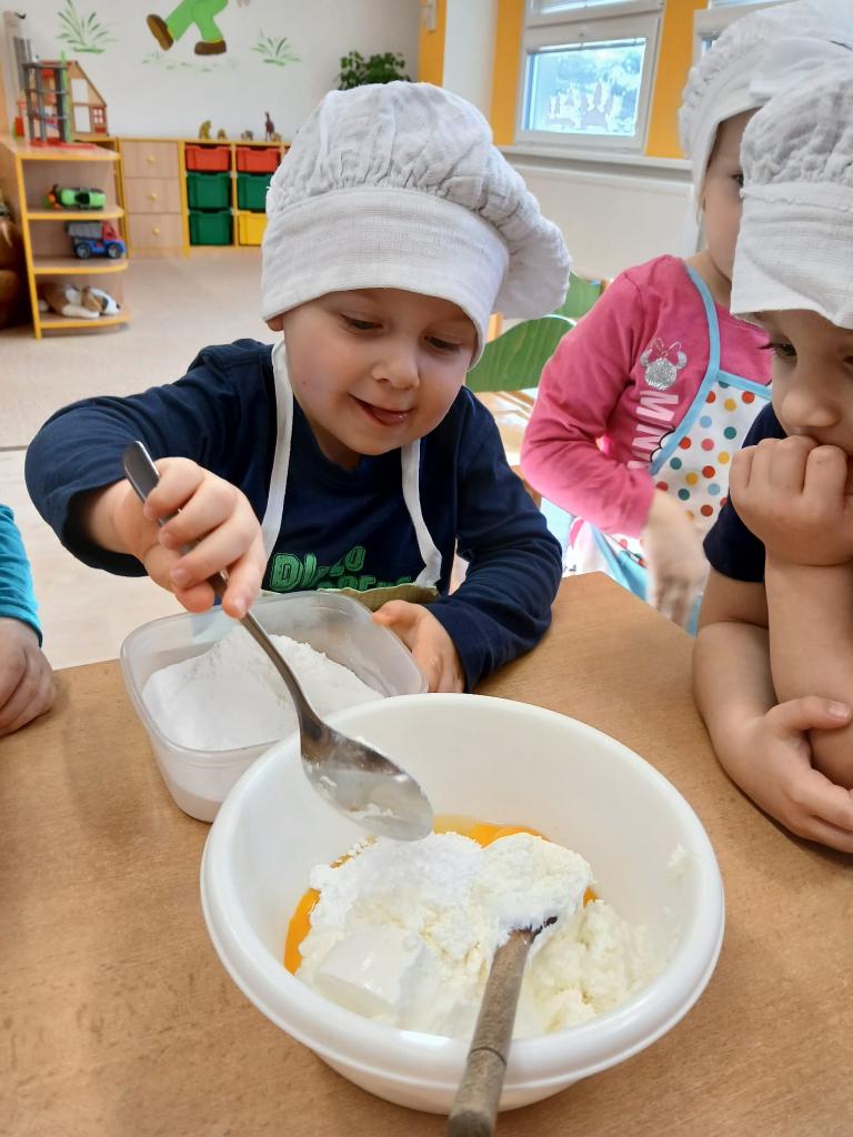 Vážilo se, krájelo, míchalo, peklo se, smažilo a nakonec samozřejmě nechyběla ochutnávka, které se děti nemohly dočkat. Kuchařské dopoledne se vydařilo a už se těšíme na další.