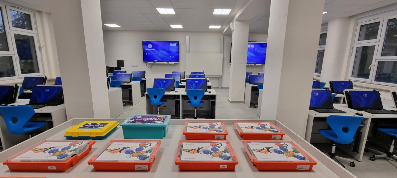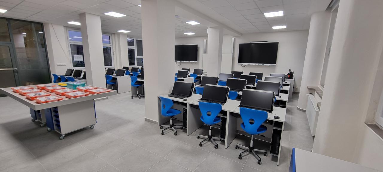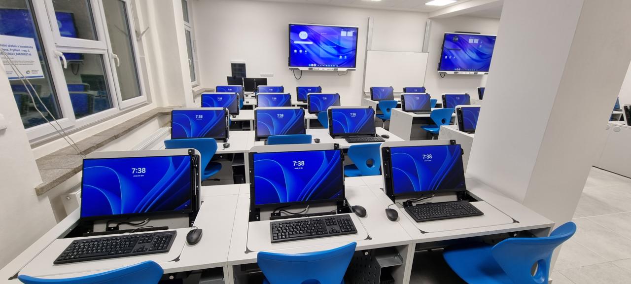Učebna je vybavena 30 žákovskými pracovními místy s pevnými počítači, pracovním místem pro učitele, prezentační technikou a vybavením pro práci s robotickými stavebnicemi. Slouží pro moderní výuku řady předmětů, například matematiky, fyziky, pracovních činností, cizích jazyků, informatiky nebo výtvarné výchovy,