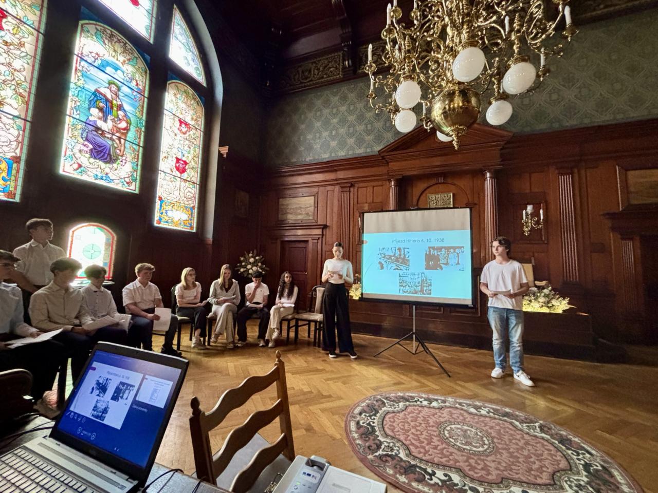 V pondělí 5. května 2025 dopoledne navštívili všichni žáci 2. stupně ve frýdlantském kině představení českého filmu Musíme si pomáhat. Od 17.00 hodin pak skupina našich deváťáků pod vedením paní učitelek Mgr. Lucie Zralé a Mgr. Žanety Wudyové připravila pro veřejnost historickou přednášku, která byla věnována bombardování Frýdlantu 8. května 1945.